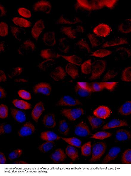 The protein encoded by this gene is a member of the fibroblast growth factor receptor family, where amino acid sequence is highly conserved between members and throughout evolution. FGFR family members differ from one another in their ligand affinities and tissue distribution. A full-length representative protein consists of an extracellular region, composed of three immunoglobulin-like domains, a single hydrophobic membrane-spanning segment and a cytoplasmic tyrosine kinase domain. The extracellular portion of the protein interacts with fibroblast growth factors, setting in motion a cascade of downstream signals, ultimately influencing mitogenesis and differentiation. This particular family member is a high-affinity receptor for acidic, basic and/or keratinocyte growth factor, depending on the isoform. Mutations in this gene are associated with Crouzon syndrome, Pfeiffer syndrome, Craniosynostosis, Apert syndrome, Jackson-Weiss syndrome, Beare-Stevenson cutis gyrata syndrome, Saethre-Chotzen syndrome, and syndromic craniosynostosis. Multiple alternatively spliced transcript variants encoding different isoforms have been noted for this gene.