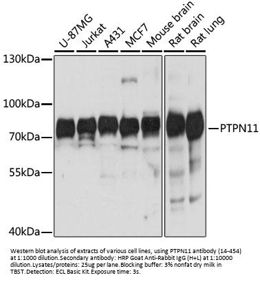 Alias SHP2 Antibody: CFC,NS1,SHP2,BPTP3,PTP2C,PTP-1D,SH-PTP2,SH-PTP3,SHPTP2,Tyrosine-protein phosphatase non-receptor type 11,Protein-tyrosine phosphatase 1D