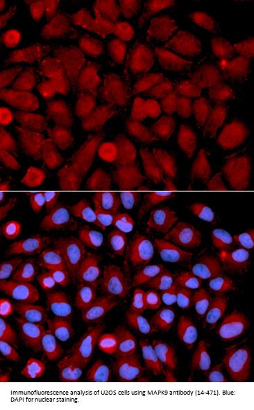 Recombinant fusion protein containing a sequence corresponding to amino acids 1-424 of human MAPK9 (NP_002743.3).