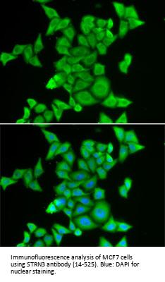 Recombinant fusion protein containing a sequence corresponding to amino acids 200-460 of human STRN3 (NP_001077362.1).