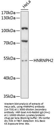 Recombinant fusion protein containing a sequence corresponding to amino acids 210-285 of human HNRNPH2 (NP_062543.1).