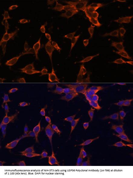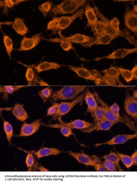 Recombinant fusion protein containing a sequence corresponding to amino acids 1-120 of human USP36 (NP_079366.3).