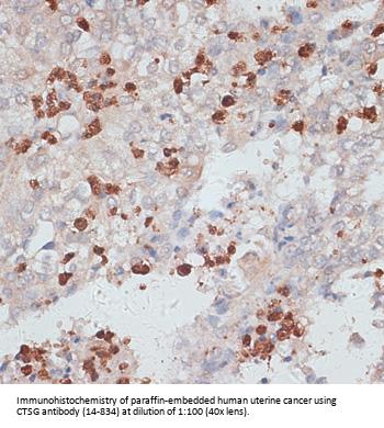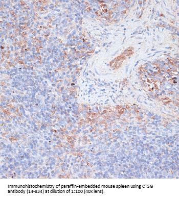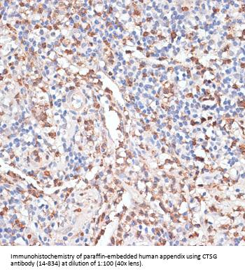 Recombinant fusion protein containing a sequence corresponding to amino acids 75-190 of human CTSG (NP_001902.1).