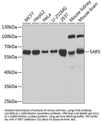Recombinant fusion protein containing a sequence corresponding to amino acids 1-300 of human SARS (NP_006504.2).