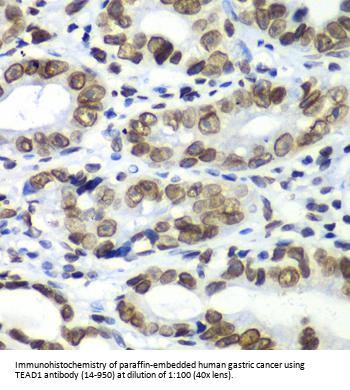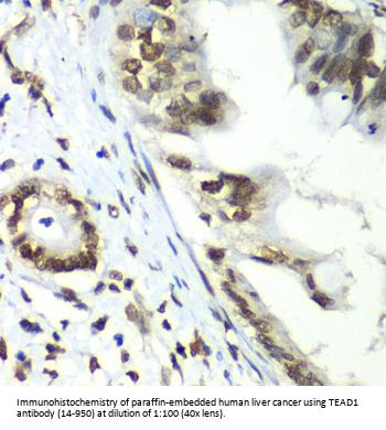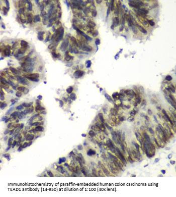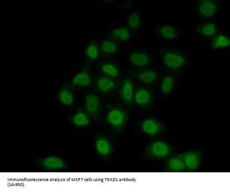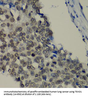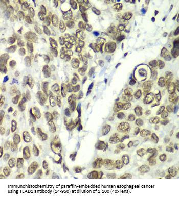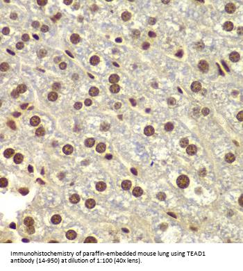 Recombinant fusion protein containing a sequence corresponding to amino acids 135-215 of human TEAD1 (NP_068780.2).