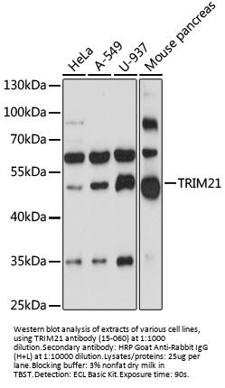 Alias TRIM21 Antibody: SSA,RO52,SSA1,RNF81,Ro/SSA,E3 ubiquitin-protein ligase TRIM21,52 kDa Ro protein,SS-A