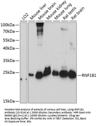 Recombinant fusion protein containing a sequence corresponding to amino acids 1-153 of human RNF181 (NP_057578.1).