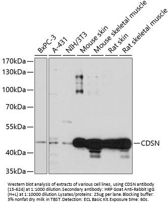 A synthetic peptide corresponding to a sequence within amino acids 100-200 of human CDSN (NP_001255.3).
