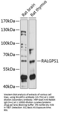Recombinant fusion protein containing a sequence corresponding to amino acids 1-300 of human RALGPS1 (NP_055451.1).