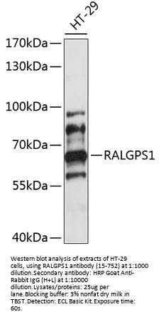 Recombinant fusion protein containing a sequence corresponding to amino acids 1-300 of human RALGPS1 (NP_055451.1).