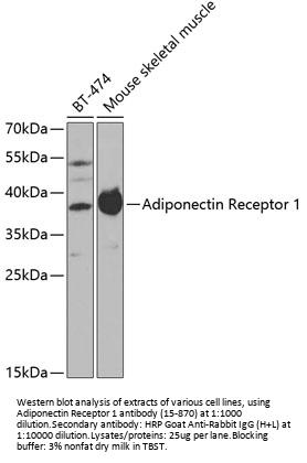 Recombinant fusion protein containing a sequence corresponding to amino acids 1-136 of human Adiponectin Receptor 1 (NP_057083.2).
