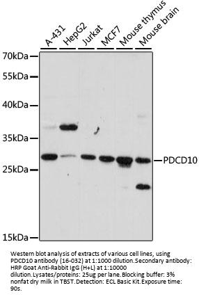 Recombinant fusion protein containing a sequence corresponding to amino acids 1-212 of human PDCD10 (NP_009148.2).
