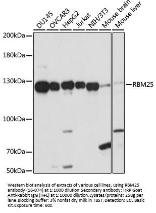 Recombinant fusion protein containing a sequence corresponding to amino acids 614-843 of human RBM25 (NP_067062.1).