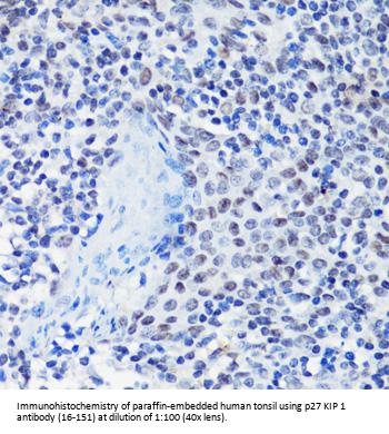 A synthetic peptide corresponding to a sequence within amino acids 1-100 of human p27 KIP 1 (NP_004055.1).