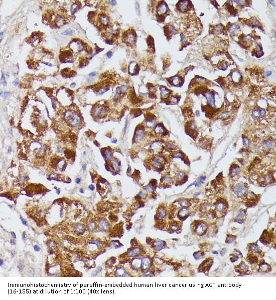 Recombinant fusion protein containing a sequence corresponding to amino acids 35-285 of human AGT (NP_000020.1).