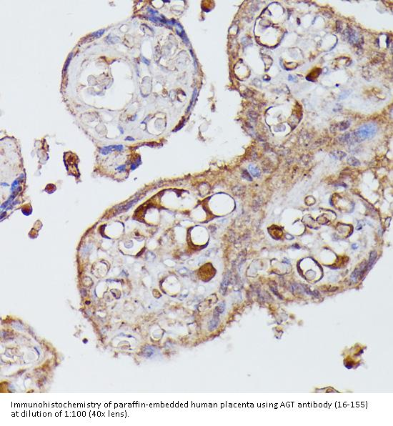 The protein encoded by this gene, pre-angiotensinogen or angiotensinogen precursor, is expressed in the liver and is cleaved by the enzyme renin in response to lowered blood pressure. The resulting product, angiotensin I, is then cleaved by angiotensin converting enzyme (ACE) to generate the physiologically active enzyme angiotensin II. The protein is involved in maintaining blood pressure and in the pathogenesis of essential hypertension and preeclampsia. Mutations in this gene are associated with susceptibility to essential hypertension, and can cause renal tubular dysgenesis, a severe disorder of renal tubular development. Defects in this gene have also been associated with non-familial structural atrial fibrillation, and inflammatory bowel disease.