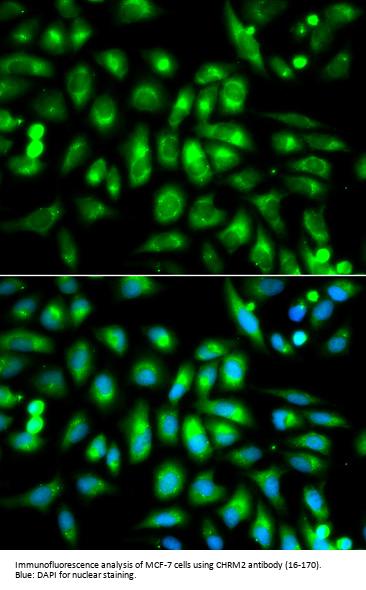 The muscarinic cholinergic receptors belong to a larger family of G protein-coupled receptors. The functional diversity of these receptors is defined by the binding of acetylcholine to these receptors and includes cellular responses such as adenylate cyclase inhibition, phosphoinositide degeneration, and potassium channel mediation. Muscarinic receptors influence many effects of acetylcholine in the central and peripheral nervous system. The muscarinic cholinergic receptor 2 is involved in mediation of bradycardia and a decrease in cardiac contractility. Multiple alternatively spliced transcript variants have been described for this gene.