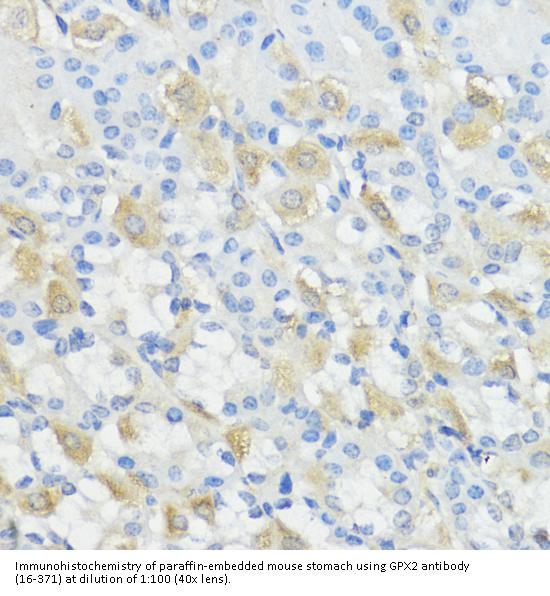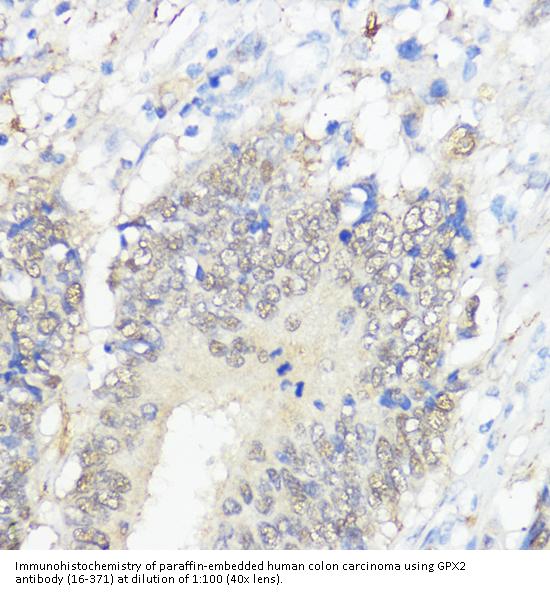 The protein encoded by this gene belongs to the glutathione peroxidase family, members of which catalyze the reduction of organic hydroperoxides and hydrogen peroxide (H2O2) by glutathione, and thereby protect cells against oxidative damage. Several isozymes of this gene family exist in vertebrates, which vary in cellular location and substrate specificity. This isozyme is predominantly expressed in the gastrointestinal tract (also in liver in human), is localized in the cytoplasm, and whose preferred substrate is hydrogen peroxide. Overexpression of this gene is associated with increased differentiation and proliferation in colorectal cancer. This isozyme is also a selenoprotein, containing the rare amino acid selenocysteine (Sec) at its active site. Sec is encoded by the UGA codon, which normally signals translation termination. The 3' UTRs of selenoprotein mRNAs contain a conserved stem-loop structure, designated the Sec insertion sequence (SECIS) element, that is necessary for the recognition of UGA as a Sec codon, rather than as a stop signal. Alternatively spliced transcript variants have been found for this gene.