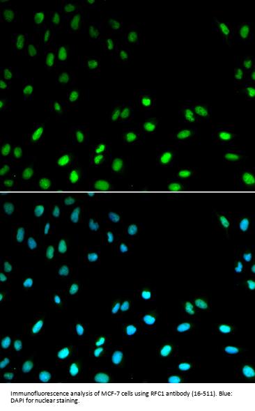 Recombinant fusion protein containing a sequence corresponding to amino acids 400-700 of human RFC1 (NP_001191676.1).