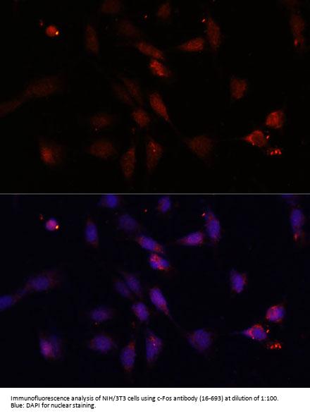 The Fos gene family consists of 4 members: FOS, FOSB, FOSL1, and FOSL2. These genes encode leucine zipper proteins that can dimerize with proteins of the JUN family, thereby forming the transcription factor complex AP-1. As such, the FOS proteins have been implicated as regulators of cell proliferation, differentiation, and transformation. In some cases, expression of the FOS gene has also been associated with apoptotic cell death.