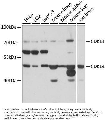Recombinant fusion protein containing a sequence corresponding to amino acids 1-120 of human CDKL3 (NP_001107047).