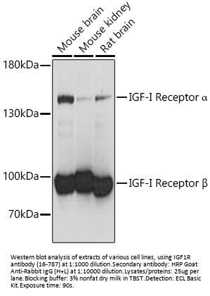 This receptor binds insulin-like growth factor with a high affinity. It has tyrosine kinase activity. The insulin-like growth factor I receptor plays a critical role in transformation events. Cleavage of the precursor generates alpha and beta subunits. It is highly overexpressed in most malignant tissues where it functions as an anti-apoptotic agent by enhancing cell survival. Alternatively spliced transcript variants encoding distinct isoforms have been found for this gene.