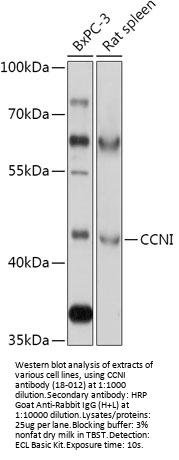 Recombinant fusion protein containing a sequence corresponding to amino acids 257-377 of human CCNI (NP_006826.1).
