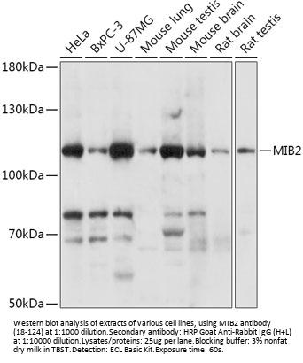Recombinant fusion protein containing a sequence corresponding to amino acids 300-580 of human MIB2 (NP_001164158.1).