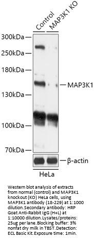 A synthetic peptide corresponding to a sequence within amino acids 1400 to the C-terminus of human MAP3K1 (NP_005912.1).