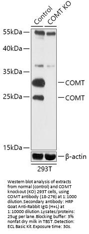 Catechol-O-methyltransferase catalyzes the transfer of a methyl group from S-adenosylmethionine to catecholamines, including the neurotransmitters dopamine, epinephrine, and norepinephrine. This O-methylation results in one of the major degradative pathways of the catecholamine transmitters. In addition to its role in the metabolism of endogenous substances, COMT is important in the metabolism of catechol drugs used in the treatment of hypertension, asthma, and Parkinson disease. COMT is found in two forms in tissues, a soluble form (S-COMT) and a membrane-bound form (MB-COMT). The differences between S-COMT and MB-COMT reside within the N-termini. Several transcript variants are formed through the use of alternative translation initiation sites and promoters.