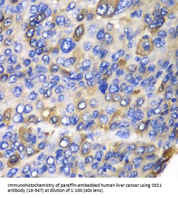 Recombinant fusion protein containing a sequence corresponding to amino acids 287-566 of human CES1 (NP_001257.4).