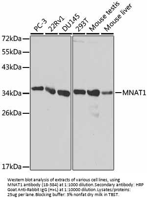 Recombinant fusion protein containing a sequence corresponding to amino acids 1-309 of human MNAT1 (NP_002422.1).