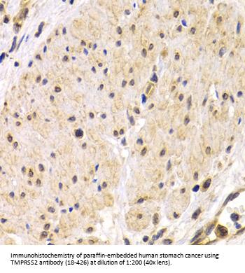 Recombinant fusion protein containing a sequence corresponding to amino acids 140-400 of human TMPRSS2 (NP_001128571.1).