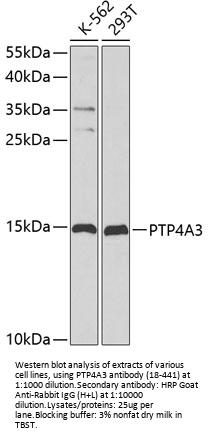 Recombinant fusion protein containing a sequence corresponding to amino acids 1-148 of human PTP4A3 (NP_009010.2).