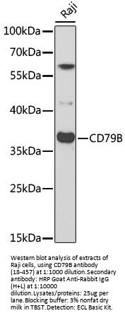 The B lymphocyte antigen receptor is a multimeric complex that includes the antigen-specific component, surface immunoglobulin (Ig). Surface Ig non-covalently associates with two other proteins, Ig-alpha and Ig-beta, which are necessary for expression and function of the B-cell antigen receptor. This gene encodes the Ig-beta protein of the B-cell antigen component. Alternatively spliced transcript variants encoding different isoforms have been described.