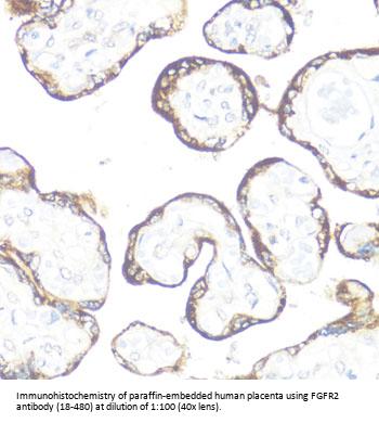 The protein encoded by this gene is a member of the fibroblast growth factor receptor family, where amino acid sequence is highly conserved between members and throughout evolution. FGFR family members differ from one another in their ligand affinities and tissue distribution. A full-length representative protein consists of an extracellular region, composed of three immunoglobulin-like domains, a single hydrophobic membrane-spanning segment and a cytoplasmic tyrosine kinase domain. The extracellular portion of the protein interacts with fibroblast growth factors, setting in motion a cascade of downstream signals, ultimately influencing mitogenesis and differentiation. This particular family member is a high-affinity receptor for acidic, basic and/or keratinocyte growth factor, depending on the isoform. Mutations in this gene are associated with Crouzon syndrome, Pfeiffer syndrome, Craniosynostosis, Apert syndrome, Jackson-Weiss syndrome, Beare-Stevenson cutis gyrata syndrome, Saethre-Chotzen syndrome, and syndromic craniosynostosis. Multiple alternatively spliced transcript variants encoding different isoforms have been noted for this gene.