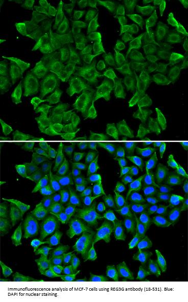This gene encodes a member of the regenerating islet-derived genes (REG)3 protein family. These proteins are secreted, C-type lectins with a carbohydrate recognition domain and N-terminal signal peptide. The protein encoded by this gene is an antimicrobial lectin with activity against Gram-positive bacteria. Alternative splicing results in multiple transcript variants encoding multiple isoforms.