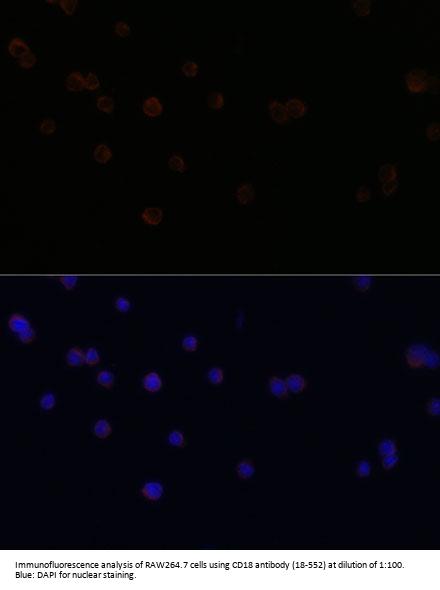 A synthetic peptide corresponding to a sequence within amino acids 70-170 of human CD18 (NP_000202.3).