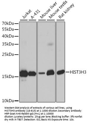 A synthetic peptide corresponding to a sequence within amino acids 50 to the C-terminus of human HIST3H3 (NP_003484.1).