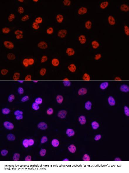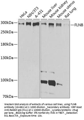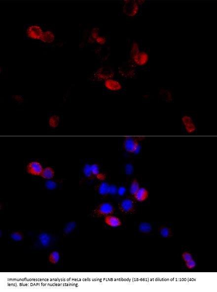 Recombinant fusion protein containing a sequence corresponding to amino acids 1686-1785 of human FLNB (NP_001157789.1).