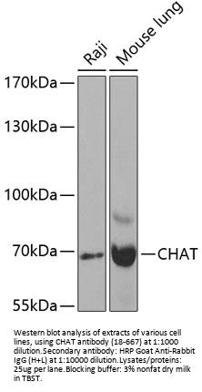 Recombinant fusion protein containing a sequence corresponding to amino acids 331-630 of human CHAT (NP_001136401.1).