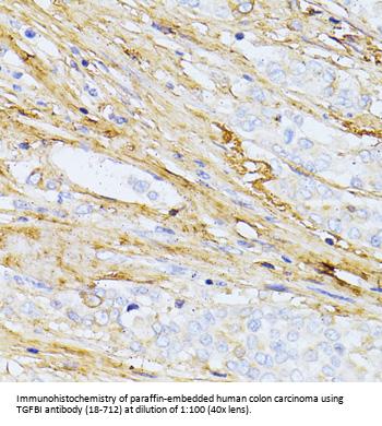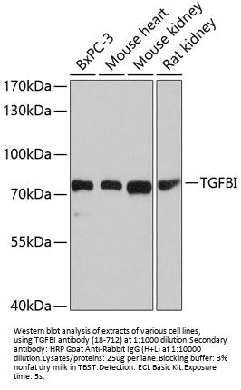 This gene encodes an RGD-containing protein that binds to type I, II and IV collagens. The RGD motif is found in many extracellular matrix proteins modulating cell adhesion and serves as a ligand recognition sequence for several integrins. This protein plays a role in cell-collagen interactions and may be involved in endochondrial bone formation in cartilage. The protein is induced by transforming growth factor-beta and acts to inhibit cell adhesion. Mutations in this gene are associated with multiple types of corneal dystrophy.