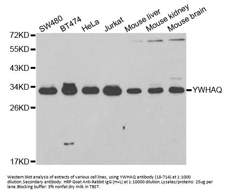 Recombinant fusion protein containing a sequence corresponding to amino acids 1-245 of human YWHAQ (NP_006817.1).