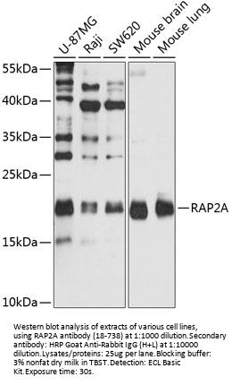 Recombinant fusion protein containing a sequence corresponding to amino acids 1-183 of human RAP2A (NP_066361.1).