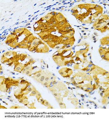 A synthetic peptide corresponding to a sequence within amino acids 150-250 of human DBH (NP_000778.3).