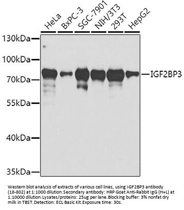 Recombinant fusion protein containing a sequence corresponding to amino acids 1-200 of human IGF2BP3 (NP_006538.2).