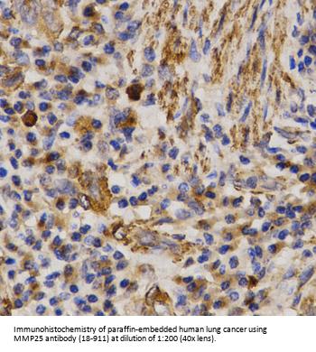 Proteins of the matrix metalloproteinase (MMP) family are involved in the breakdown of extracellular matrix in normal physiological processes, such as embryonic development, reproduction, and tissue remodeling, as well as in disease processes, such as arthritis and metastasis. Most MMPs are secreted as inactive proproteins which are activated when cleaved by extracellular proteinases. However, the protein encoded by this gene is a member of the membrane-type MMP (MT-MMP) subfamily, attached to the plasma membrane via a glycosylphosphatidyl inositol anchor. In response to bacterial infection or inflammation, the encoded protein is thought to inactivate alpha-1 proteinase inhibitor, a major tissue protectant against proteolytic enzymes released by activated neutrophils, facilitating the transendothelial migration of neutrophils to inflammatory sites. The encoded protein may also play a role in tumor invasion and metastasis through activation of MMP2. The gene has previously been referred to as MMP20 but has been renamed MMP25.