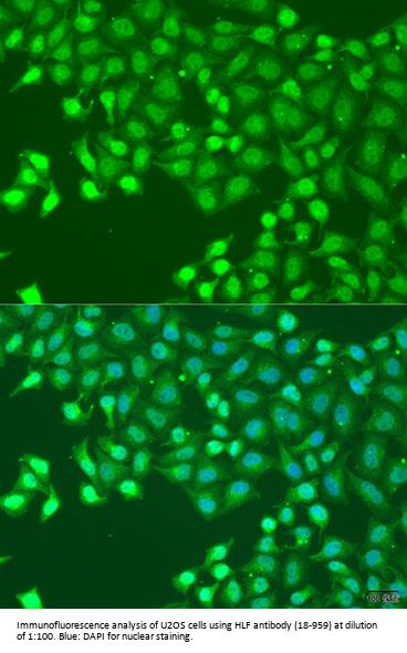 Recombinant fusion protein containing a sequence corresponding to amino acids 1-295 of human HLF (NP_002117.1).