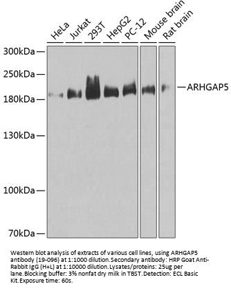 Recombinant fusion protein containing a sequence corresponding to amino acids 1292-1501 of human ARHGAP5 (NP_001164.2).
