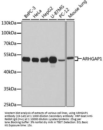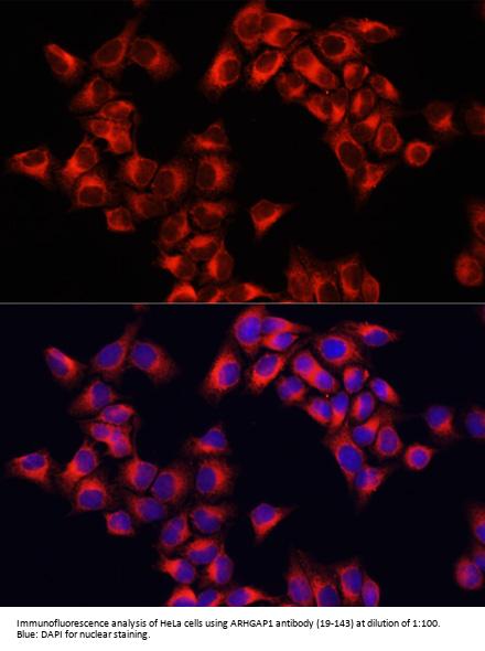 Recombinant fusion protein containing a sequence corresponding to amino acids 210-439 of human ARHGAP1 (NP_004299.1).